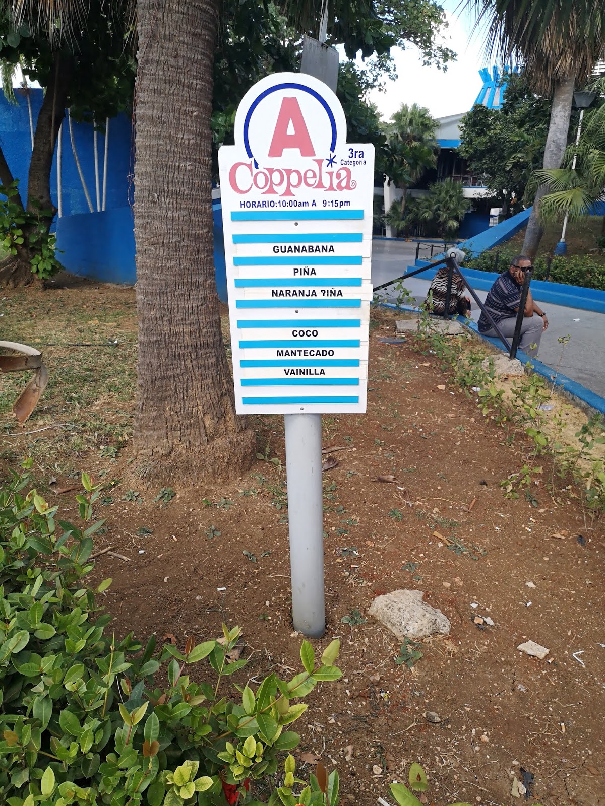 Eis von Coppelia habe ich dennoch gegessen – und zwar in Cienfuegos, wo es am Prado ebenfalls eine Niederlassung dieses Eissalons gibt. Hier musste ich mich nicht anstellen und konnte sofort hinein. Ich bestellte einen „Arlequin“, das ist ein Becher mit 2 Kugeln Eis nach Wahl (wobei die Auswahl auf 5 bis 6 Sorten beschränkt ist) und einem kleinen Stück Gebäck.