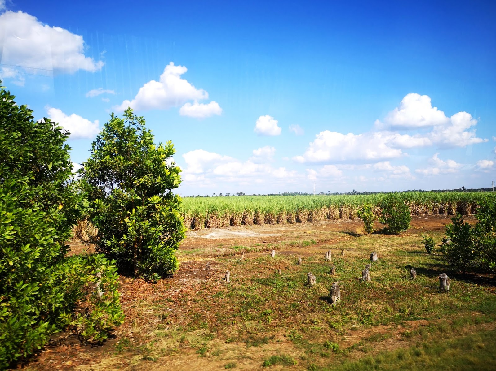 Der Bus fuhr inzwischen auf der schnurgeraden Autobahn weiter nach Osten. Die Straße war fast völlig leer, nur ab und zu kam uns ein anderer Reisebus oder eine vereinzelte Pferdekutsche entgegen. Links und rechts der Strecke waren Kuhweiden, Wiesen, Laubwälder und Palmenhaine zu sehen, alles sehr schön grün.