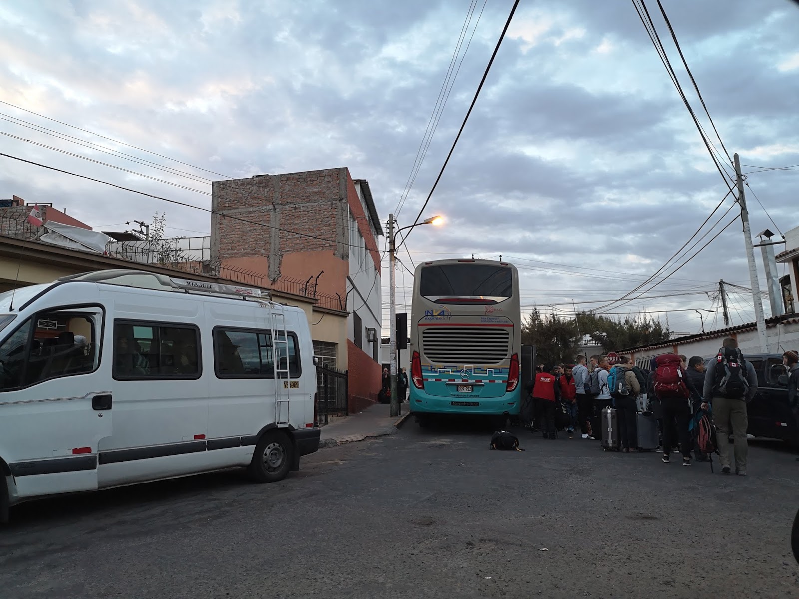 Gleich nach dem Stopp zum Abendessen dreht der Reiseleiter das Licht im Bus ab. Es wird ruhig und irgendwann schlafe ich ein. Hin und wieder bekomme ich mit, dass es über Serpentinen bergauf und bergab geht, doch ich schlafe wieder ein und wache erst kurz vor der Ankunft in Arequipa um 6 Uhr Früh wieder auf.