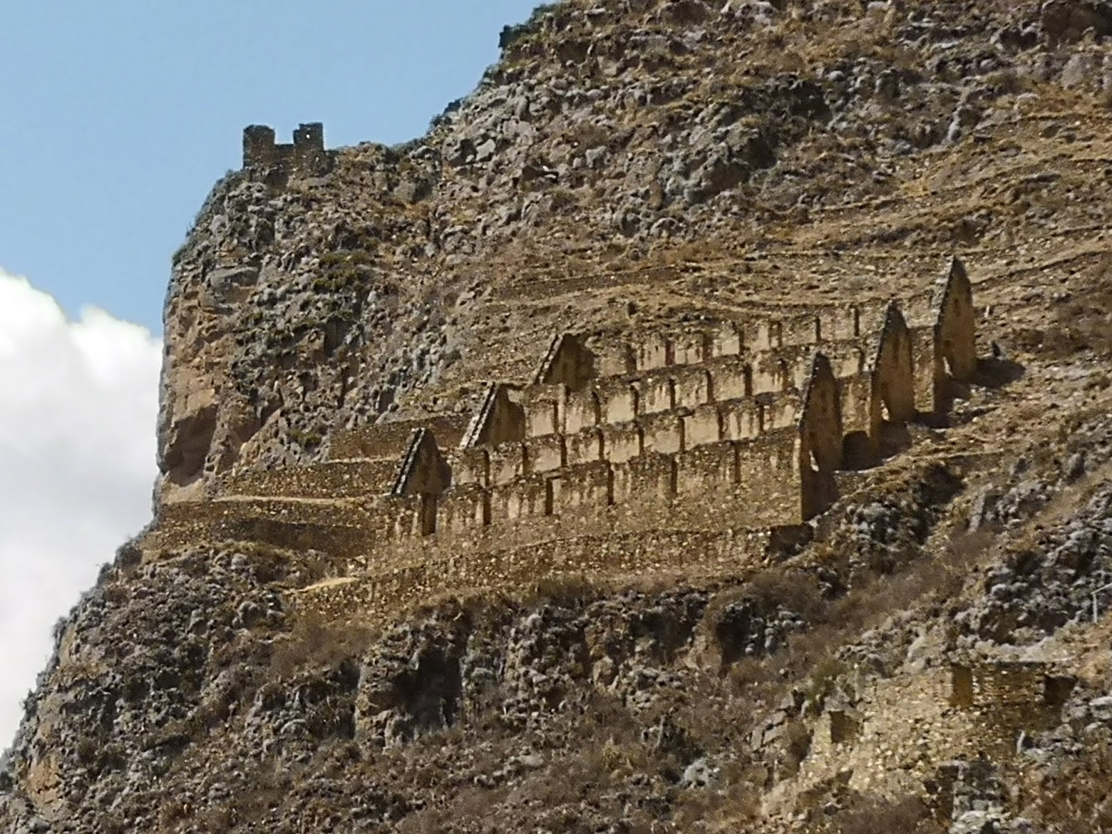 Von hier könnte man noch zu den oberen Lagerhäusern der Inkas weiter gehen, doch mir reicht es für heute und ich kletterte wieder langsam hinunter. Der Abstieg gestaltet sich fast noch schwieriger als der Aufstieg. Es gibt kein Geländer und die Stufen sind teilweise sehr glatt und rutschig.
