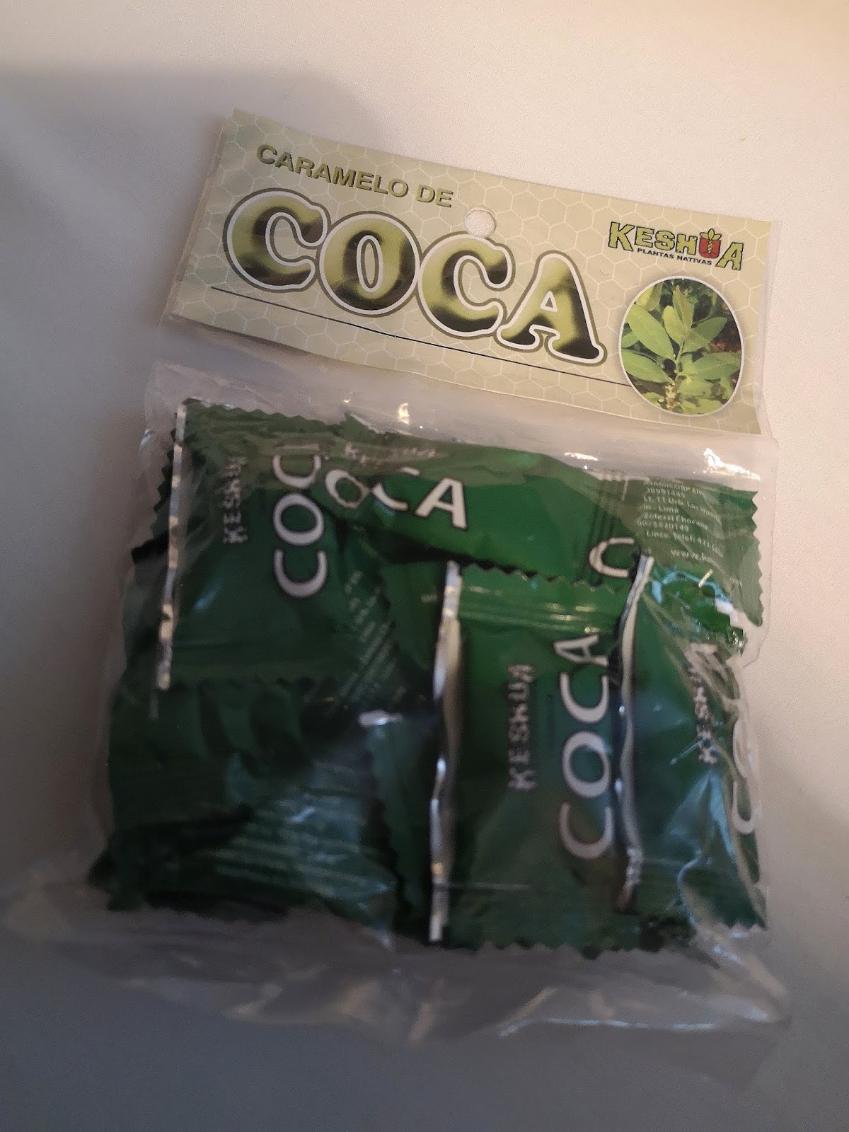 Und in jedem Kiosk, Supermarkt oder Souvenirladen kann man Coca Bonbons in den verschiedensten Ausführungen kaufen. Im Supermarkt gibt es Coca-Tee in ganz normalen Teebeuteln und sogar Coca-Mehl und Coca-Marmelade habe ich schon gesehen.