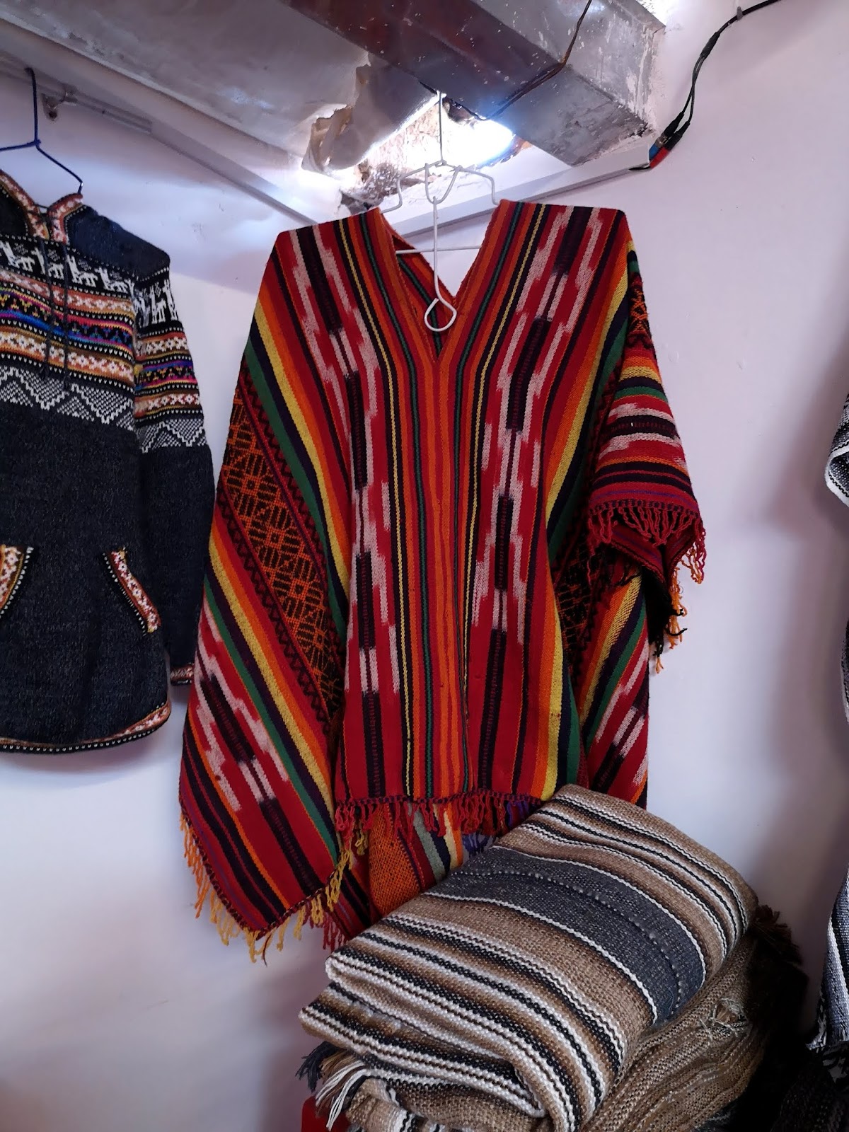 Hier liegen die Preise zwischen 40 und 50 Soles für einen Pullover. Die Sachen sind trotzdem hübsch und als Kälteschutz in den Anden durchaus geeignet. Man erzählte mir allerdings, dass man beim Waschen sehr vorsichtig vorgehen muss, da die Sachen sonst eingehen. Bei 40 Soles kann man dieses Risiko meiner Meinung nach aber eingehen.